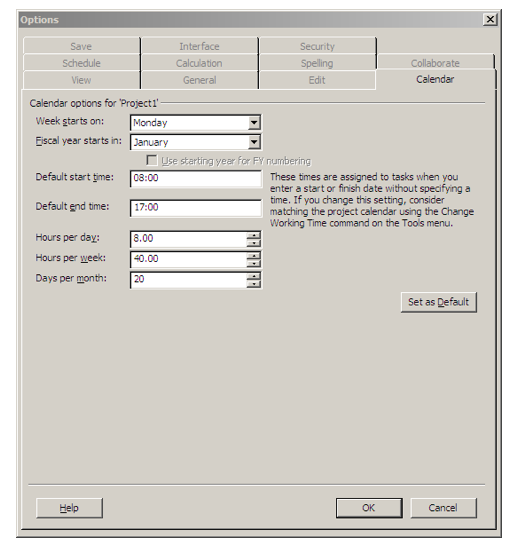 the default calendar for the project.